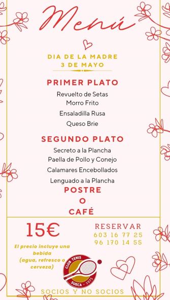 Menú día de la madre Hay que reservar en los teléfonos : 603 16 77 25 / 96 170 14…