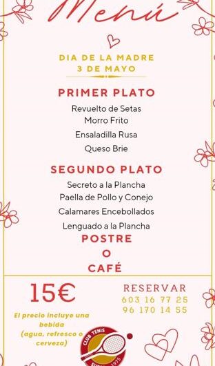 Hay que reservar en los teléfonos : 603 16 77 25 / 96 170 14 55